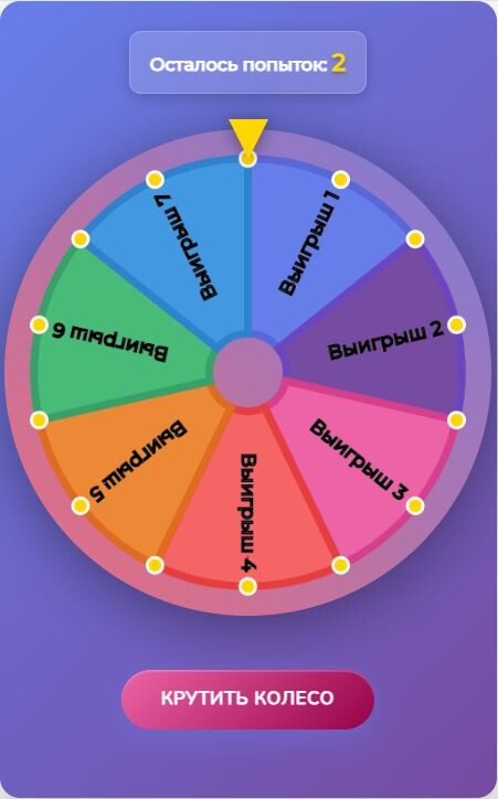 Вы сами задаете число попыток вращений колеса для участника: кто и сколько могут крутить колесо, например, только авторизованные и два раза могут крутить (участник получает 2 приза)
